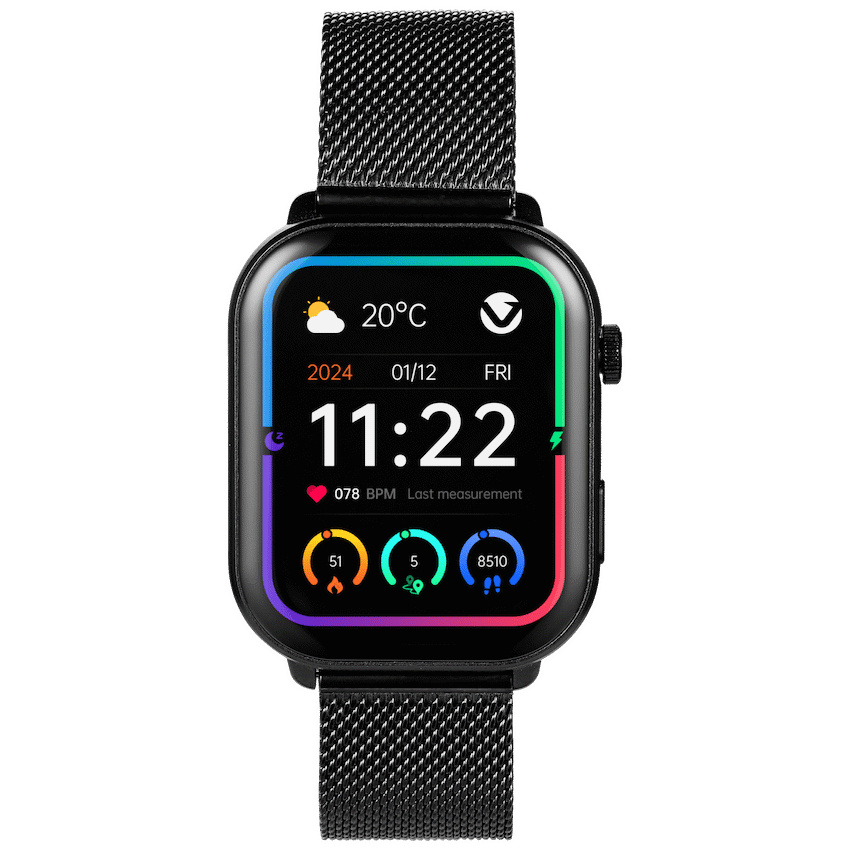 Volkano Trinity series Smartwatch with Metal Mesh strap – Bl